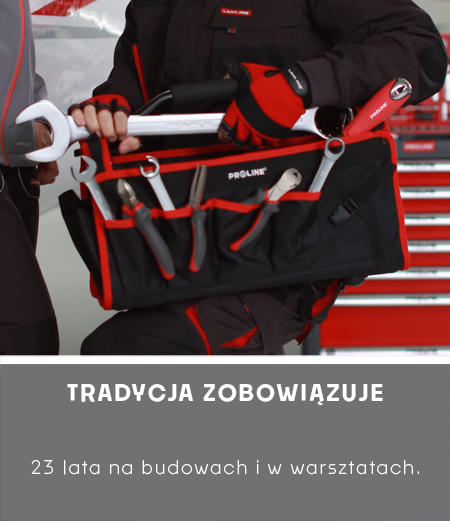 Narzędzia PROLINE - wytrzymałe i dokładnie wykonane, projektowane są zgodnie z dewizą "dobrym narzędziem lepiej pracujesz". Testowane w ekstremalnych warunkach, przechodzą surowy proces selekcji i certyfikacji, gwarantujący ich najwyższą jakość.